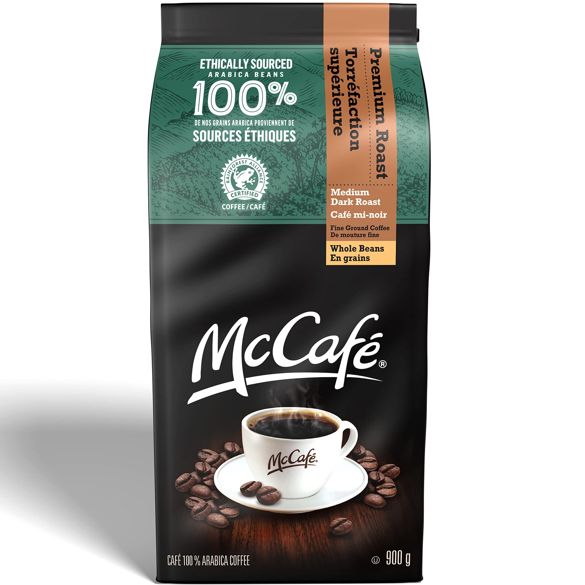 Details: Brew the irresistible taste of McCafé Premium Roast coffee and start your day off on the right foot. The process begins by selecting quality 100% Arabica beans then traditionally fire roasting them to create our signature medium dark roast blend, which yields a balanced flavour and rich aroma. Each batch of McCafé Premium Roast coffee is carefully tasted by master craftsmen to ensure we deliver that rich, smooth, delicious taste you love. It's also important to note that our Arabica beans are sourced from Rainforest Alliance Certified™ farms, which means we can support a healthier planet and an improved quality of life for farming communities. Plus, this McCafé product is proudly roasted and blended in Canada and contains ground caffeinated coffee. It can be used with certain Keurig coffee makers as well as standard drip coffee machines.